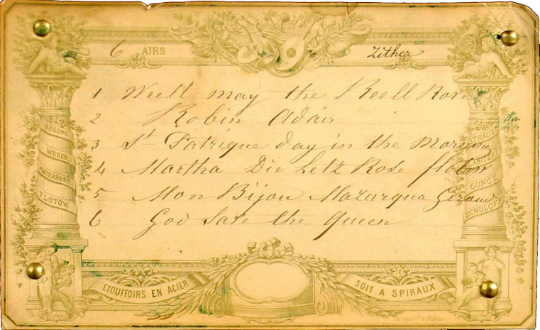 Ungemarkt [Paillard] Zither, 2nd: Robin Adair, 4th: Martha, 6th: God Save the Queen.
