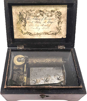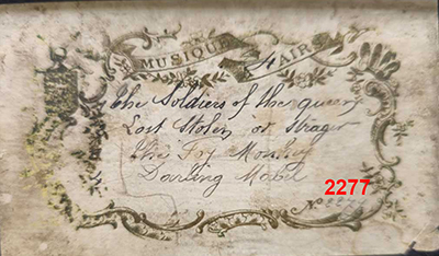 Ornamentbordüre auf einem Musikzettel eines kleinformatigen Spielwerkes