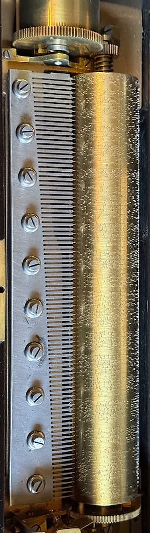 ©Boite à musique en bois noirci et bois marqueté de motifs de fleurs et de liserés.Elle présente sous son couvercle une étiquette d'origine inscrite Harpe-Zither 12 1/2 n°2002 et indiquant les huit airs à danser joués, parmi lesquels la Tyrolienne de Guillaume Tell par ROSSINI et la scottish de la Louisianaise par WAGNER. Rayures d'usage et petits sauts de peinture. Mécanisme en état de marche (prévoir les révisions nécessaires).20 x 61,5 x 26 cm La Louisianause. Schottisch (pour orchestre) par Paul Wagner (1864) http://worldcat.org/identities/viaf-2737093/ https://data.bnf.fr/en/14832243/paul_wagner/ 20. Juni 1805 — 25. Januar 1871 N° 2067: Harpe Harmonique Zither, 8 airs