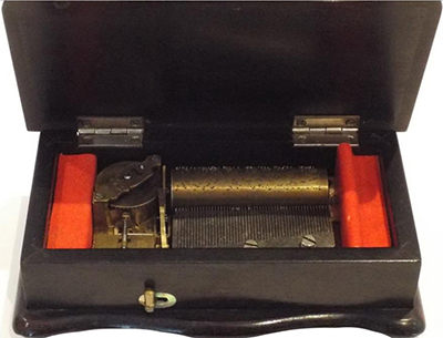 An unusual American-market musical box playing two airs, in bowfront ebony case,