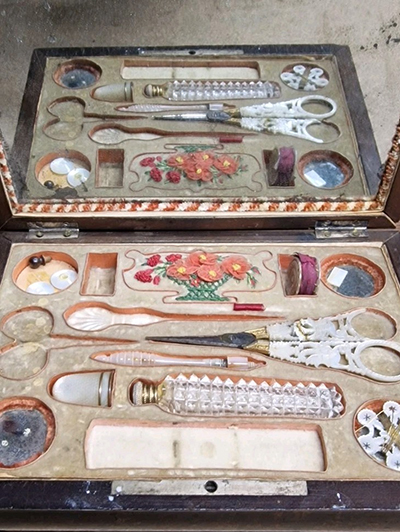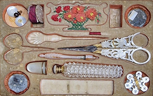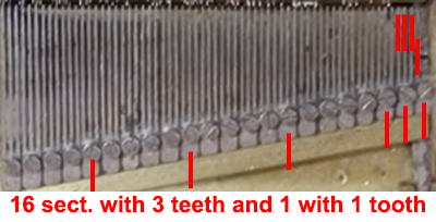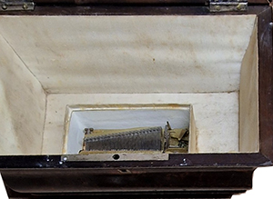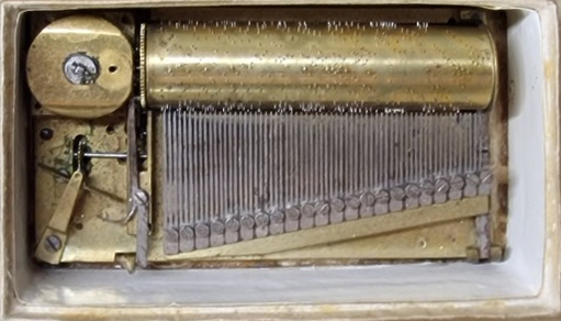 Reisenecessaire (dessen Gehäuse ein „flügelhaubenartiges“ Design aufweist), mit einem Sektionalkamm-Spielwerk mit 16 Sektionen, 15 mit 3 und 1 mit 2 Zungen (45+2=47 Zungen) Privateigentum