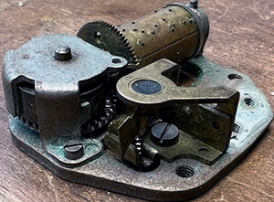 Metallsparende Konstruktion des Federhauses und der Grundplatte Variante 2 Federhaus / barrel house mit / with Unbekannter Hersteller / unknown maker